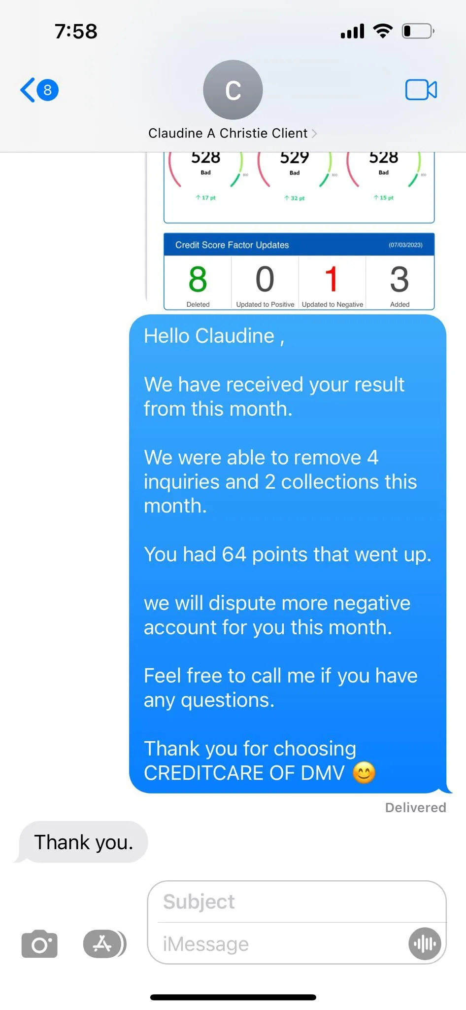 Yes. We send updates every 35–45 business days through email and text after the bureaus respond to each round of disputes.
